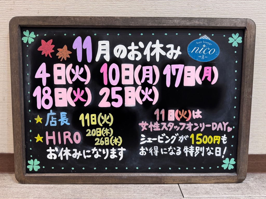 - 🍁11月のお休みです🍁 - 2025年10月31日